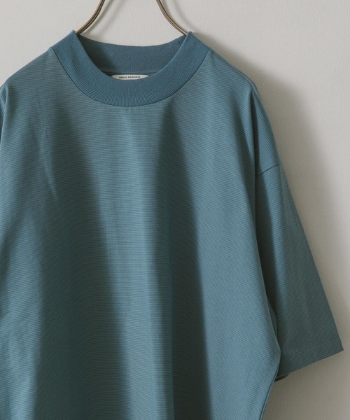 【"100回洗ってもヨレにくい"モックネックTシャツ】夏場にがしがし洗ってもよれにくい丈夫なボーダーTシャツが登場しました。綿80%、ナイロン20%の混紡生地でハリのある度詰め生地を採用しています。さらりとした肌触りでカジュアルすぎない表面に仕上がっています。 夏場にも着やすい低めのモックネックで一枚で着ても様になり、標準的なシルエットなので秋口はカーディガンやシャツのインナーに合わせやすい一枚です。 さりげなくポイントになる微配色のミジンボーダー柄を採用しました。 ※商品画像は、光の当たり具合やパソコンなどの閲覧環境により、実際の色味と異なって見える場合がございます。予めご了承ください。 ※商品の色味の目安は、商品単体の画像をご参照ください。 ▼お気に入り登録のおすすめ▼ お気に入り登録商品は、マイページにて現在の価格情報や在庫状況の確認が可能です。 お買い物リストの管理に是非ご利用下さい。 ----------------------------- 透け感:なし 伸縮性:あり 裏地:なし 光沢:なし ポケット:なし -----------------------------