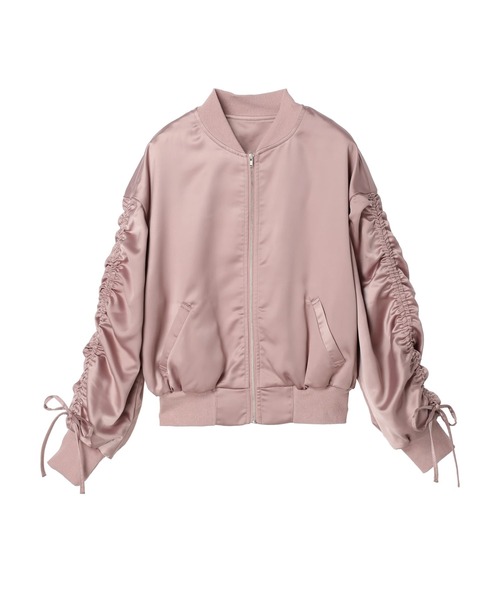 くしゅくしゅっとしたドロストデザインのスリーブが可愛らしいブルゾン。 リボンのアクセントや上品な光沢のある素材感も、女性らしい印象を演出。オーバーシルエットで気になるボディラインも優しくカバーしてくれます。 大人レディなカジュアルスタイルが楽しめる存在感のある1枚です。