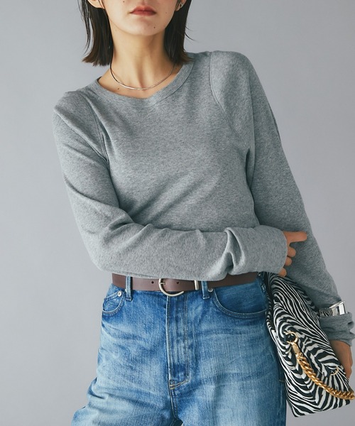 \大人気の為追加決定!/ しなやかさがあり、肌触り抜群! ●POINT ・一枚で決まる衿元と肩のデザイン ・カジュアル過ぎない自然な光沢 ・長めな袖丈がスタイリングのアクセントになり◎ ●デザイン 最高級ペルーコットンの柔らかく、しなやかな風合いが特徴のカットソー。 大人にぴったりなカジュアル過ぎない自然な光沢があり、テレコ生地の凹凸のある表面感や動きやすさもポイントです。 1枚で素敵に決まるよう、衿元は太めに設定し、肩を大きくベースボールのように模ったデザイン。 裾はラウンドさせ、軽く仕上げることでボトムIN、OUT共にバランスを取りやすくなっております。 袖は長め丈なので、手の甲まで伸ばしたスタイルもおすすめです。 ●おすすめコーディネート 一枚着はもちろん、ニットが増える時期のインナー使いにもぴったり。ロングシーズン着用出来ます。 リヴドロワオススメはアシメフロントロングスカートやハンサムボトムで合わせたキレイめカジュアルな着こなし。 また、今季注目のデニムのオーバーオールで合わせたカジュアルスタイルもオススメ。 ボトムを選ばず様々なシーンで活躍するアイテムです。 ●素材 綿 100% ・肌触りがよく柔らかな風合い 洗濯方法:手洗い可 透け感:ややあり 裏地:なし 伸縮性:あり 生地の厚さ:ふつう 光沢:ややあり 《Q&A》 Q1:フィット感は強いですか? ⇒ややフィット感はございますが、ゆるやかなフィット感のため窮屈感はなく、細見えを叶えるシルエットとなっております。 やわらかく伸縮性に富んだ素材のため、締め付け感も感じにくく快適に着ていただけるアイテムです。 Q2:洗濯の際、伸びないか心配です。 ⇒やわらかくしなやかな素材の特性上、手洗いをオススメしております。 また、伸びが心配な方には平干しをして頂くと、シルエットを綺麗に保つことができますので、お試しください。 【スタッフ着用コメント】 ●身長:161cm 着用サイズ:F 骨格:ウェーブ 柔らかく着心地抜群のカットソー! インナーはもちろん、一枚で着ても素敵に着ていただけるアイテムです! 1枚で素敵に決まるよう、衿元は太めに設定し、肩を大きくベースボールのように模ったデザイン。 裾はラウンドしているのでインでもアウトでも◎ ●身長:170cm 着用サイズ:F 骨格:ナチュラル カジュアルになりすぎないテレコカットソーは大人女子にピッタリな一着。 スッキリ見えるネックラインと肩のデザインが一枚でサマになるアイテム。 レイヤードのインナーにも使えてロングシーズン活躍間違いなし! ●身長:158cm 着用サイズ:F 骨格:ストレート インナーに着たカットソーはとても着心地が良く、程よいフィット感があるので、サロペットのインナー使いにはもちろん、シンプルにパンツ合わせでもシルエットがキレイです! ========================== 【注意点】 ※画像の商品は光の照射や角度、お使いのモニター環境により、実物と色味が異なる場合がございます。 あらかじめご了承下さいませ。 ========================== 【お買い物をもっと便利に楽しく♪】 『♡』をクリックでお気に入り登録 ・「商品のお気に入り登録」で・・・ ラスト1点や再入荷の通知が届きます。登録して頂いた商品だけが対象となる、あなただけのタイムセールが開催されることも! ・「ブランドのお気に入り登録」で・・・ 新商品や再入荷など、いち早くブランドのお得な情報を 受け取ることができますので、ご登録をおすすめします! ========================== ロンT / Tシャツ /インナー / クルーネック / 丸首 / シンプルT / デイリー / ベーシック / 秋服 / シンプル / 肌に優しい / 大人カジュアル /ワントーン