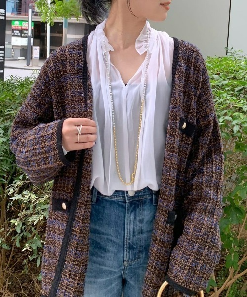 初秋の一枚着から冬のコーデのレイヤードスタイルに!●POINT・スリットネックと襟元のリボンが抜け感を演出・レイヤードスタイルにも相性がよく、ロングシーズン着用できる・上品さのあるシアー感●デザイン着こなしに繊細な甘さをプラスしてくれるペザント風フリルカラーブラウス。スリットネックと襟元のリボンが抜け感を演出してくれるデザインです。 キュプラコットンを使用したシアーボイルは上品な透け感で肌離れが良く快適な着心地。初秋から真冬までレイヤードアイテムとしてロングシーズン着用して頂けます。 カラーは様々なテイストにマッチするオフホワイトとブラックの2色展開。キュプラ80%混の素材ですが、ご自宅でホームケア可能なところも嬉しいポイントです。 ●おすすめコーディネートトレンドライクなシアー感で一枚着としても◎ジャケットのインナーや、デニムでドレスダウンする着こなしなどにピッタリ嵌るアイテムです。ニットや今年らしいベストなどにレイヤードする冬のコーディネートにも相性がよく、ロングシーズン楽しんで頂けるのでこれからのシーズンにワードローブに加えたい一着。●素材キュプラ 80%綿 20%・やわらかく繊細さのある素材洗濯方法:手洗い可透け感:あり裏地:なし伸縮性:なし生地の厚さ:うすい光沢:なし【スタッフ着用コメント】●身長:155cm 着用サイズ:F 骨格:ウェーブ着こなしに繊細な甘さをプラスしてくれるペザント風フリルカラーブラウス。初秋から真冬までレイヤードアイテムとしてロングシーズン着用して頂けます。 ●身長:164cm 着用サイズ:F 骨格:ウェーブシアー感のあるフリルブラウスは一見甘めに見えますが、モノトーンでまとめたりブラウスの裾をきちんとインせず、着崩すことで抜け感を出すと◎●身長:170cm 着用サイズ:F 骨格:ナチュラルフリルカラーとスリットネックがアクセントになったオンナっぷりブラウス。秋コーデには一枚で、冬にはニットとのレイヤードに、着回し力抜群の一着!【骨格タイプ】・ストレートタイプ全体的に筋肉質で体にメリハリがあるタイプ腰とバスト位置も高く厚みがあり、ひざ下は細目・ウェーブタイプ全体的に柔らかな曲線の体のライン重心が下半身にあり、上半身は華奢で薄い印象・ナチュラルタイプ筋肉や脂肪があまり感じられなく重心の偏りがないタイプ骨組みはしっかりしており、関節が目立ちやすい==========================【注意点】※画像の商品は光の照射や角度、お使いのモニター環境により、実物と色味が異なる場合がございます。 あらかじめご了承下さいませ。==========================【お買い物をもっと便利に楽しく♪】『♡』をクリックでお気に入り登録・「商品のお気に入り登録」で・・・ラスト1点や再入荷の通知が届きます。登録して頂いた商品だけが対象となる、あなただけのタイムセールが開催されることも!・「ブランドのお気に入り登録」で・・・新商品や再入荷など、いち早くブランドのお得な情報を受け取ることができますので、ご登録をおすすめします!==========================夏羽織 / フリル / フリルネック / スタンドカラー / スキッパー / オーバーサイズ / 冷房対策 / 夏服 / 大人カジュアル / シアーシャツ / シアー / 透け感 / 抜け感 / リラックス / 涼しい / ボリューム袖 / ボリュームスリーブ / ビッグシルエットシャツ / トレンド / クラシカル