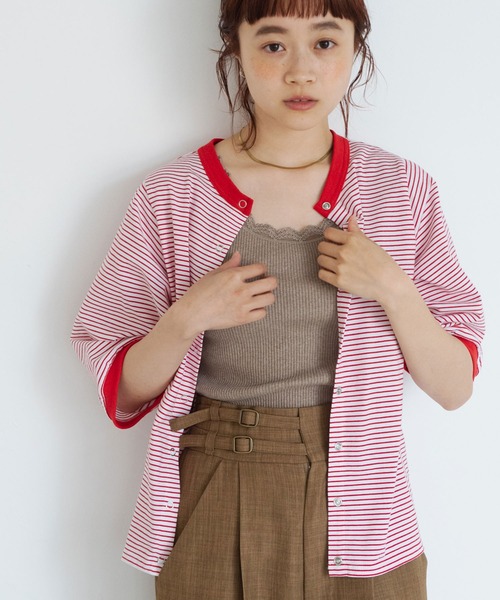 前後2way仕様で雰囲気を変えた着こなしが楽しめるリンガーTシャツ。細めのピッチのボーダー柄で大人カジュアルな印象にしてくれます。ゆったりとしたサイジングで身体のラインを拾わず華奢見え効果も◎スナップボタンで着脱しやすくアクセントをプラス。羽織りとしてはもちろん、前後2way仕様なのでボタンを後ろにして着用することでプルオーバーとしても活躍する、コーディネートの幅が広がる1枚です。衿と袖口のパイピングが目を惹きポイントになります。肘にかかる絶妙な袖丈で気になる二の腕をカバーしてくれるのも嬉しい◎肌触りの良いコットン100%。伸縮性のある柔らかな素材で快適に着ていただけます。- - - - - - - - - - - - - - - - - - - - - - - - - - - - - - - - - 透け感:なし裏地:なし伸縮性:あり光沢感:なし- - - - - - - - - - - - - - - - - - - - - - - - - - - - - - - - - ※ 撮影時の照明などの環境と、モニターに表示される色味がメーカーにより変わってしまう等の理由により、実際にお届けする商品と、ご覧になられているアイテムの色が若干異なる場合がございます。ご了承下さいませ。*人気品番リピート商品のためお買い求めやす、お値下げしての販売になりました