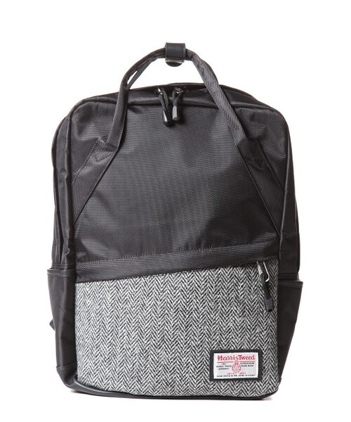 【ツイードをプラスしぐっと上品に】ナイロン素材のバックパックにHarrisTweedの切り替えを入れた新鮮なデザインが魅力。小振りなスクエアフォルムでユニセックスでお使いになれるデザインになっています。持ち手も付いているのでちょっとした移動にも便利。ツイードの素材感が程よいアクセントになったバッグです。