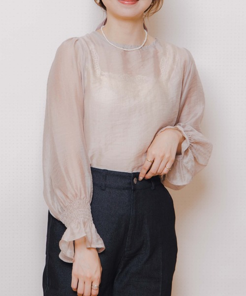 パフボリュームスリーブと、シャーリングの袖口がポイントのシアートップス♪ほど良いシアー感と少し光沢のある生地を使用してお作りいたしました。何にでも合わせやすい Ivory、Beigeと、特別感のあるPinkの3色展開でご用意いたしました。デイリー使いにおすすめの1枚です。【お買い物を上手にお楽しみいただくためのPOINT2つ】◎ 購入ボタン横の ♡ (ハートマーク)をクリック! 完売カラーの再入荷通知、残り1点の通知、セールの通知を受け取れます。 (クリックまたはタップで商品のお気に入り登録♪)◎ ショップのトップページにある ♡ (ハートマーク)「お気に入りショップに追加」をクリック! 新商品や再入荷等、いち早くブランドのお得な情報を受け取れます。 (ブランドのお気に入り登録♪)
