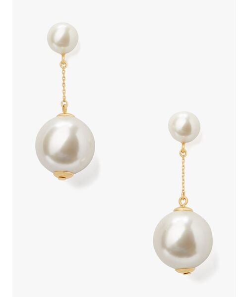 さあ、楽しい時間のはじまり。艶めくボールが連なるこの大胆なリニアピアスを耳元で揺らし、朝まで踊り明かして。どんな装いも似合うシンプルさがありつつ、程よいボリューム感で存在感もアピールできるデザイン。季節を問わず活躍するアイテムは、ジュエリーボックスにひとつあると重宝します。 採寸サイズ トップ長さ:6cm モチーフ:2.3×2cm 【商品詳細】 ・合金、フェイクパール、エポキシストーン、キュービックジルコニア ・留め具:チタンポスト、シグネチャースペードキャッチ ・重さ: 20.21g