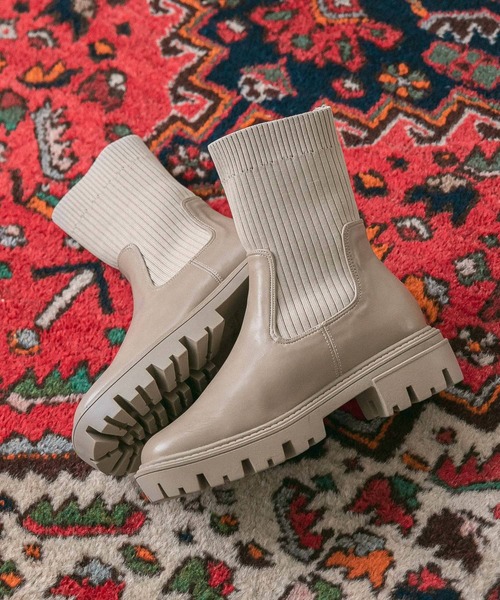 ーーー履き口がニットリブデザインのトラックソールショートブーツ。ストレッチ性のあるリブでラクに着脱ができる優れもの。トレンドライクなトラックソールで旬な足元に。抗菌防臭機能付き。ーーー※屋外での撮影画像は光の加減で実際の商品より明るく見えたり、風合いが異なって見える場合がございます。商品の色味はスタジオ撮影の画像を参考にして下さい。-------------------------------------≪お買い物をよりお楽しみいただくために≫◆商品のお気に入り登録(ハートマークをクリック)完売カラーの再入荷通知や、完売間近の通知、セールの通知も受けることができます。◆ブランドのお気に入り登録新商品や再入荷など、いち早くブランドのお得な情報を受け取ることができます。-------------------------------------