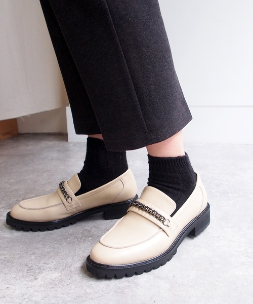 - 2022AW - メンズライクなチェーンビットローファー チェーンがアクセントになったボリューム感のあるローファー。 タンクソールでほんのりメンズライクなものの、スマートなトゥラインがカジュアル感を抑えて大人っぽい顔つきに。 履き心地のポイント ●サッと脱ぎ履き楽ちん ●しっかりクッションが入っており疲れにくく歩きやすい ●グリップ力のあるタンクソール 相性のよいコーディネート ●スラックスパンツで通勤コーデに ●トレンドのフレアパンツをかぶせて ●靴下コーデ [片足の重さ] 約 290g [着用レビュー] スタッフChika 足長 :23.8cm 足囲 :22.9cm/ワイズD(標準) 甲の高さ:5.5cm/低め 特徴 :甲の高さはやや低め、幅は標準的です。指先はスクエアに近いエジプト型。普段履くサイズは23.5cmあるいはMサイズです。 コメント: 23.5cmをタイツで着用しました。 足長・幅ともにジャストサイズ。甲をすっぽりと覆うので安定感抜群です。 ソールに厚みがあり、地面からの突き上げ感が緩和されます。 かっちりした革靴ですが、軽くて履きやすいのも魅力。 硬めのレザーなので着用時は靴ベラ必須です。 [çava çava /サヴァサヴァ] 大人の女性の為のカジュアルシューズブランド。 “履き込むほどに足に馴染み、オリジナリティーがつくられていく” 味わい深く温かみのある素材使いで 長く愛用できるデザインにこだわったラインナップが揃っています。 ---------------------------------------------------- 商品について ---------------------------------------------------- ・画像の商品はサンプルです。 実際の商品と仕様、加工、サイズ、素材が若干異なる場合がございます。予めご了承ください。 ・トップの画像は、光の具合で色味が違って見える場合があります。 商品の色味は、スタジオ撮影の画像をご参照ください。 ・サイト上のカラー名と、お届け商品に記載されているカラー名が異なる場合がございます。 ・厳選された素材を使用しておりますが、雨に濡れたり、汗による湿気、乾燥状態での摩擦により革が色落ちし、衣服や靴下などに色移りする可能性がございます。 ご使用の際には十分ご注意くださいますようお願い致します。 ---------------------------------------------------- 返品について ---------------------------------------------------- ・商品の性質上、ご着用後のご返品については お受けすることができません。あらかじめご了承ください。 ・修理依頼は、カスタマーサポートセンターお問い合わせ「ご注文に関するお問い合わせ」までご連絡ください ---------------------------------------------------- 気になる商品にはぜひ「お気に入り登録♥」を! ---------------------------------------------------- [♥] アイテムをお気に入りに追加すると… 完売製品の再入荷や、在庫ラスト1点などの通知を受け取ることができます! [♥] ブランドをお気に入りに追加すると… 新商品情報や、再入荷などブランドの最新情報をいち早く受け取ることができます! ----------------------------------------------------