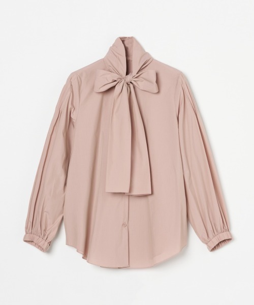 取り外し出来るボウタイ付きのブラウスです。コットンの清涼感とポリエステルの光沢感をシャンブレー組織に織り込み、高密度タイプライター生地に仕上げたトレンド素材を用いています。ボウタイの有る無しでスタイリングの幅が広がります。袖口のボリュームは細見え効果もあり、シルエットがきれいです。 ◆商品のお気に入り登録をおすすめします◆ 完売カラーの再入荷や、ラスト1点の通知、セールの際の通知を受ける事ができます。ブランドのお気に入り登録もご一緒にお願い致します。