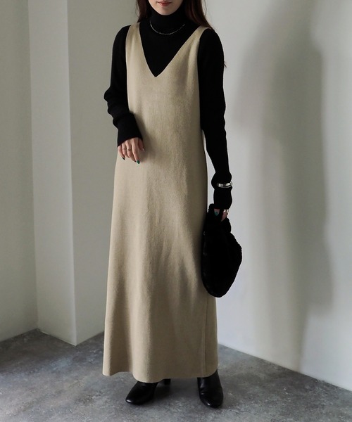 【Riberry 深Vネックニットワンピース】 深めのVネックが大人っぽい♡ ニットキャミワンピース ■Styling キャミを合わせて一枚風で着ても、インナーを合わせても着ることができるシーズンレスで着ることができるキャミワンピース 同素材のカーディガン(品番:ANT5904)と合わせてもセットアップ風になり可愛いです♪ 今季トレンドのベストやアームカバーを合わせてトレンド感たっぷりのコーディネート、 インナーにロンTやシースルートップスなどを合わせたコーデなど 幅広く楽しんでいただけます◎ ■Detail まっすぐストンと落ち感のあるシルエットですが 体系を拾いすぎないデザインなので着やすさ抜群です◎ ■Material 程よい厚みのあるニット素材。 秋~冬にかけて大活躍間違いなしです! ※詳しいお手入れ方法は商品タグをご参照ください。 #ニットワンピース #キャミワンピース #きれいめカジュアル 【Information】 ◆《お気に入り登録》がオススメ◆ ・「商品のお気に入り登録」で再入荷通知や、ラストの通知、セール通知も受け取ることが出来ます。 ・「ブランドのお気に入り登録」で新商品や再入荷など、お得な情報を受け取ることが出来ます ※撮影時のライティング、ご覧になっているモニター・PC環境により、実際の商品と色味が異なって見える場合がございます。予めご了承をお願い致します。
