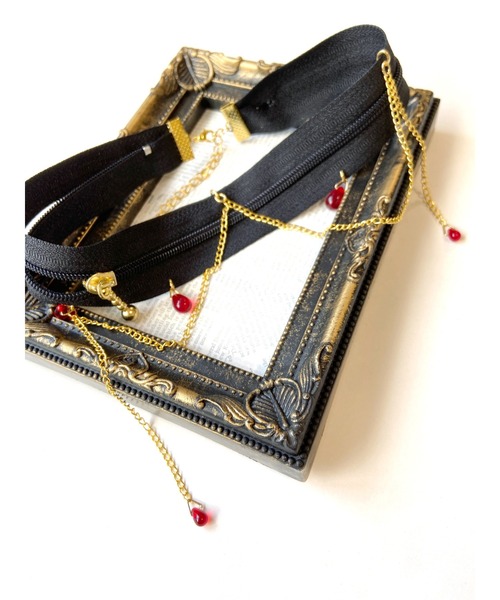 綺麗な紅い雫と、ゴールドのチェーンがゆらゆらと揺れるファスナーチョーカー。 ファスナー部分は開け閉め可能ですので、お好みにあわせてご利用できます。 ゴスロリ、パンク、v系のファッション、ラフなファッションに合わせるだけでも印象的なコーデになります。 サブカル、病みかわいいファッションにもおすすめです。 *MUURABBTI* ムウラビティー ハンドメイドアクセサリー ◆他にはない特別なアクセサリー、自分へのご褒美に、誕生日プレゼントや贈り物に◆ 普段使い、結婚式、ドレスコーデ、お呼ばれ、学校行事、特別な日のアクセサリー、ワンランク上のママコーデにお使いいただけるものを一つ一つ心をこめて手作業で作っております。 自分だけの、特別で素敵なアクセサリーに巡り会えますように ※一つ一つ丁寧に制作しておりますが、レジン等、接着剤のはみだし、小さなキズ、歪み、小さなホコリ、色ムラ、チェーンのコマ数、個体差などがある場合がございますのでご了承お願い致します。 ※アンティークカラーの金属パーツ、チェーンは黒、深緑の汚れのような色が見られますが、アンティークカラーの風合いとしてご理解下さい。摩擦で色が手や服に付いてしまうこともありますので、ご使用、保管にはご注意ください。 ※水、汗などで金属が変色する場合がございます。 ※レジン、お花を使ったものは日にちが経つにつれ、変色、色がぬけるものがございます。 ※ハンドメイド作品は既製品ほど強くはありませんので、無理な力を加えると破損の恐れがあります。 ※ファスナー、爪付きストーン、金属パーツは、髪、衣類のひっかけにご注意ください。 ※実物の色、風合いに合わせ、画像調整を行っておりますが、ご覧いただいてる画像と実物の品物で多少色や風合いの感じ方が異なる場合もございます。 ※金属の変色、レジンの黄変などは、保管状態により劣化の速さが異なります。 ご使用後、柔らかい布などで、水分、油分を拭き取り、直射日光を避け、冷暗所に保管していただくと、長くお使いいただけます。【より良いお買い物サービスを】▼商品のお気に入り登録完売カラーの再入荷通知や、ラスト1点の通知、セールの通知も受け取ることができます。▼ブランドのお気に入り登録新商品や再入荷等、いち早くブランドのお得な情報を受け取ることができます。※撮影場所やイメージにより、実際の商品と色味が若干異なる場合がございます。