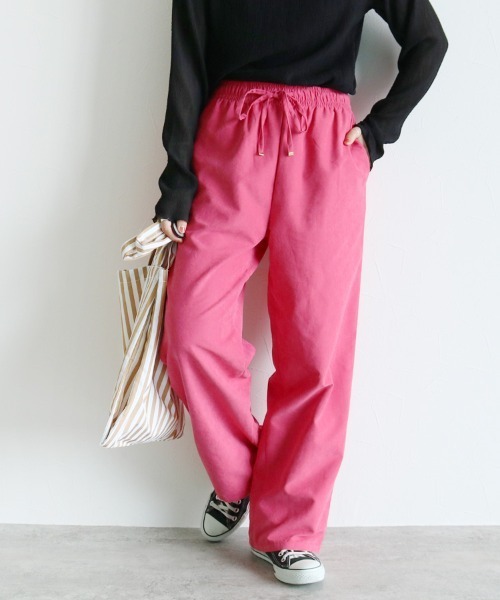 ■Pointこれからの季節にピッタリ!スウェードのような光沢感で上品さを保ちながら、程よくカジュアルな抜け感をプラスしたエアリーな大人のワイドパンツです♪■Deteilウエストゴム仕様でラクチン!トップスインした時にも上品に見えるフロントデザインです。透け感を気にせず着用でき、しっとりとした生地感なので高見えします。■Coordinateシンプルなカットソーと合わせても、程よい抜け感ある軽やかなコーデに。ロングTシャツやブラウスと合わせたリラクシースタイルを楽しむのもおすすめ。コーデに厚みをもたらしてくれる素材なので、お出かけの時にもピッタリです!■■■もっとお買物をお得にお楽しみいただくために■■■【商品のお気に入り登録】再入荷のお知らせや、ラスト1点のお知らせ、セールのお知らせを受け取ることができます!【ブランドのお気に入り登録】新作商品や完売アイテムの再入荷情報など、お得な情報をいち早く受け取ることができます!※サイズは現物をスタッフが平置き採寸したものになります。※モデル着用写真は撮影環境により、多少実際のカラーと異なる場合がございます。※生産時期により若干の色ブレやサイズの変動が生じる場合がございます。 生地の素材や種類によってシワになりやすいもの、または同じ素材でも製造時期によって異なる場合がございます。予めご了承くださいますようお願いいたします。※ご注文いただいた予約商品のお届け時期の確認は、注文履歴ページより行えます。