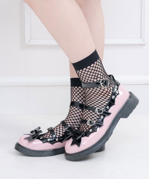 まるでかわいい小悪魔デザインのパンプスが登場♪ 【デザイン】 小悪魔デザインカットにハートのスタッズがかわいくてポイントです♪ ベルトのバックルもお揃いのハートになっています。 リボンは取り外し可能でお好みの位置に付けて頂けます。 ベルトは引っ掛け仕様になっているので着脱も楽チンになっています。 どこから見てもかわいく地雷系コーデにも活躍してくれるアイテムです。 ヒールも低く歩きやすいのでお出掛けにもぴったりです。 【素材】 ツヤ感のあるエナメル生地を使用しています。 【コーディネート】 地雷系や闇系コーデにぴったりのアイテムです。 デザインポイントたっぷりで履くだけで目を惹くアイテムです! 参戦服コーデやイベントなどにもオススメです。 ※ご覧のモニター環境や撮影環境により実際の商品と多少色味が異なって見える場合がございます。 ご理解の程よろしくお願いいたします。 【お買い物をよりお楽しみいただく為に】 ▼商品のお気に入り登録をおすすめします ♡をクリックしてください。 完売カラーの再入荷や、ラスト1点の通知、 セールの際の通知を受ける事ができます。 ブランドのお気に入り登録もご一緒にお願い致します。