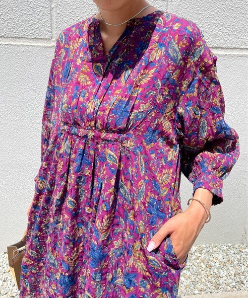 【StyleSea】芦屋発ブランド「スタイルシー」。シンプルで気負いのないシルエット、リラックススタイルで、流行に左右されないタイムレスなデザイン。着心地に拘り、リラックスと都会的な間を楽しむ、女性らしさを忘れないライフスタイルブランド。Autumn Collection【Design/Fabric】■軽やかで透け感と立体感のある生地感ジョーゼット生地にジャガード織を入れた立体感のある生地が特徴のワンピース。インド製らしい鮮やかで深みのあるカラーのボタニカル柄が今の季節にぴったりの1枚です。裏地に綿100%のコットンボイルを使用。肌あたりもよくインナーや下着の透けも気にならず着て頂けます。■「デコルテ」「ウエスト」「ヒップ」「二の腕」をカバーゆったりしたオーバーサイズシルエット、トレンドのカフタンカラーがデコルテをスッキリとみせてくれ落ち感のある柔らかな生地が気になるヒップやウエストもさりげなくカバーしてくれます。長めの丈感は腰回りや体型カバーにもなるので、さらっと気兼ねなく着ていただけます。■大人可愛いディティールトレンドの浅めのスキッパー襟が着るだけで大人可愛く、インド製のボタニカル柄が華やかに女性らしく演出してくれます。1枚でコーデの主役としても、スラックスパンツなどを合わせたレイヤードスタイルもオススメです。■体型カバーポイント【デコルテ】【二の腕】【ウエスト】【ヒップ】【太もも】【ふくらはぎ】【スタイリング】・リブパンツやプリーツパンツのようなイージーパンツを合わせたリラクシーなレイヤードスタイルがおすすめ。・インナーにハイネックのシアートップスを合わせれば旬のスタイルに。・レギンスやスキニーパンツ、トレンドのスリットデニムやスラックスパンツとのレイヤードでメリハリのあるコーデに。・旬のロングジレやベストを合わせてこなれ感のあるスタイルに。・プリーツパンツやカラーパンツなどリラックス感のあるボトムスを合わせて大人っぽいコーデに組み立てできるアイテムです。・麦素材の帽子やバケットハットなどの小物、スクエアバッグやキャンバストート、足元はグルカサンダル、ポインテッドトゥパンプスやブーティ・シンプルなデザインなのでバケットハットなどの小物、スクエアバッグや透かし編みバッグやスマホショルダー、足元はトレンドのグルカサンダル、ショートブーツ、スニーカーやスリッポンなど、小物次第で、自由にムードチェンジができるので、飽きがこず長くご愛用いただけます。・ルームウェアやワンマイルウェアとしてはもちろん、これから旅行やレジャーにも使えるアイテムです。秋冬/2022AW/ボタニカル/大人カジュアル/秋冬ワンピース/リラックススタイル/スキッパー/カフタンワンピース/レディース/プチプラ/スタイリッシュ/フェミニン/カジュアルコーデ/モード/ボヘミアン/ロングワンピース/長袖/花柄/リゾート/リラクシー【生地】――透け感:ややあり厚さ:やや薄手伸縮性:なし―――――――※ATTENTIONこの製品はインド製の生地を使用しているため、1点1点生地の見え方にばらつきがあることがございます。生地の風合いを重視しているため織りキズ、染ムラ、多少のプリントずれがある場合がございますので、予めご了承の上ご購入お願い致します。―――お取り扱い上のご注意―――[色味・サイズについて]ご覧のモニター環境や撮影環境(光の照射や角度)により、実際の商品と多少色味が異なって見える場合がございます。また商品画像はサンプルのため、稀にサイズ変更がある場合がございます。予めご了承くださいませ。[シワについて]発送上の状態によって商品がシワになる場合がございます。[においについて]密封状態で入庫し、検品時に再度袋詰めを行っておりますが、素材により染料等の臭いが若干残っている場合がございます。使用していくと臭いが抜けていくのでご安心下さいませ。[柄物アイテムについて]・全ての柄のつなぎ目は合っておりません。・生地の裁断にて、柄の出方が1点1点異なります。※柄のご指定は出来かねます。[色落ちについて]商品により色落ち・色移りがある場合がございます。品質表示を必ずご確認のうえ、着用、お洗濯、保管をお願い致します。《『♡』マークを押してお気に入り登録でお得な情報がたくさんゲット♡》―――――商品のお気に入り登録―――――★ラスト1点のお知らせ ★再入荷 ★セール ★クーポン対象 ★お気に入りの商品コーディネートなど様々な通知をお知らせいたします。――――ブランドのお気に入り登録――――【新作商品】【再販商品】など、お得な情報を受け取ることができます♪是非ともお気に入り登録をお願い致します。
