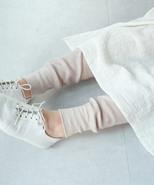 即完した人気のレギンスが待望の再入荷! ワッフル素材が心地良いレギンス。 いつものスタイルにプラスするだけで大人のこなれ感を演出します。 テーパードパンツのような適度なゆとりと裾にかけて細くなるシルエット。 フロントにはボタンを施し、細かなディティールにこだわりました。 ナチュラルなカラー展開でコーディネートに取り入れやすいのも魅力的◎ ゆったりとしたトップスやチュニックとの着こなしはもちろん、 ワンピースに合わせたレイヤードスタイルにも活躍の1枚です。 季節を問わずにオールシーズン着回せるのも嬉しいポイント。 柔らかくリラックス感があるのでおうち時間にも◎ ウエストは紐で調節可能なのでストレスフリーな穿き心地が叶います。 さらりとした肌触りのワッフル素材。 伸縮性があり柔らかく穿き心地も抜群のアイテムです。