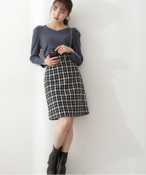 【商品特徴】クラシカルムード漂うツイードミニスカートです。フロントの大胆なアートカットデザインが可愛いポイントで、トップスをINするのがオススメ。今年注目のミニ丈のシルエットは、ハイウエストなので腰まわりをすっきり見せてくれます。【スタイリング】ハイネックブラウス、シンプルニットまで着回しできます。ブーツ合わせがオススメです。<商品のお気に入り登録>お気に入りアイテムの値下げ・再入荷・在庫1点などの通知を受け取ることができる便利機能ですので気に入ったアイテムはお気に入り登録がおすすめ!<ショップのお気に入り登録>新商品や再入荷、セール、クーポン配布などお得な情報を受け取ることができます。●撮影はサンプル商品で行っている為、仕様とサイズが異なる場合がございます。●スタジオ及び屋外で撮影した着用画像は、光の当たり具合で色味が違って見える場合があります。予めご了承ください。