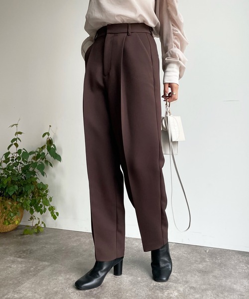 ■2022 AUTUMN & WINTER ITEM■ 着回し力大!頼れるタックパンツ 美脚をアシストしてくれる計算しつくされたサイズ感・シルエットが魅力的な1着。 美シルエットの秘訣は、お腹周りをスッキリと見せるタック使いと縦ラインを強調するセンタープレス。さらに、脚長効果期待大のハイウエストデザインまでも。 しっかりとした、高見えする素材のテーパードはオン・オフにもどちらにも使える優秀アイテムです。合わせるトップスも選ばないので幅広いスタイルを楽しんでいただけますよ♪ 秋冬らしいカラーにも注目。 - POINT - ・着回し力抜群のベーシックさ ・美脚をアシストしてくれる計算されたシルエット ・オン・オフ使える万能パンツ -------------------------------- 洗濯:手洗い可能 透け感: なし 裏地: なし 光沢感: なし -------------------------------- 【 ♡ をクリックでお得な情報をお知らせいたします 】 〈 商品のお気に入り登録 〉 お気に入りアイテムのお値下げ・再入荷・在庫ラスト1点など通知を受けることができます。 〈 ブランドのお気に入り登録 〉 DOUDOUの新商品や再入荷、セール、クーポン配布などお得な情報を受けることができます。 -------------------------------------- ※ 生産の都合上、お届け時期が前後する場合がございます。 ※ 掲載画像の商品の色味は、 撮影場所や光の当たり具合などにより色味が異なって見える場合がございます。 また、お客様のお使いのPC・スマートフォン等のモニター環境などにより色味が異なって見える場合がございます。予めご了承の上ご注文ください。 ※ 着用、お取り扱いの際は、商品についている品質表示とアテンションタグを必ずご確認下さい。