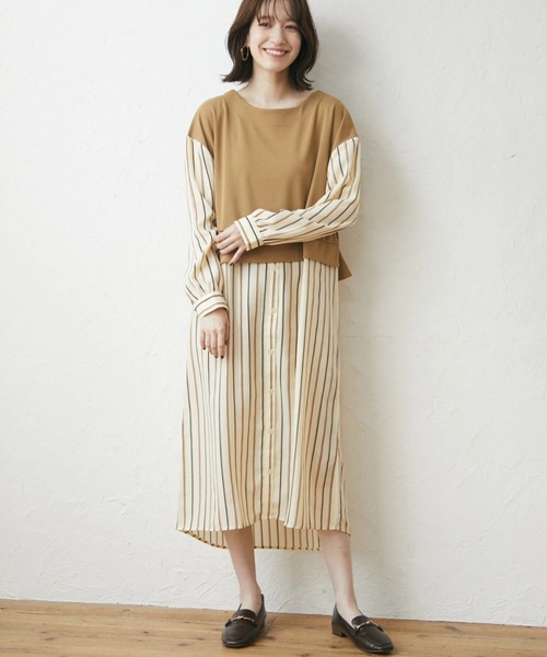 異素材使いのレイヤード風デザインがこなれた印象を漂わせるワンピース。肩落ちのデザインはルーズ感を演出してくれます。体をすっぽりと覆うゆったりシルエットなので、体型カバー効果も◎1枚でコーディネートが完成するアイテムです。【素材】透け感[やや有り]裏地[無し]伸縮性[無し]光沢感[無し]生地の厚さ[普通]付属品[無し]ポケット[無し]● Green Parks ●(グリーン パークス)20以上の人気ブランドを取り扱うアパレルセレクトショップ。ベーシックながらもさりげなくトレンドを取り入れたオリジナルブランドchocol raffine robeも展開。▼ 商品のお気に入り登録がおすすめです ▼商品ページ内のハートマークをクリック。完売時の再入荷や、最後の1点の通知、コーディネート画像がアップされたとき、お得なお値下げの際の通知を受ける事ができます。【お知らせ】ページでも通知が確認できます。