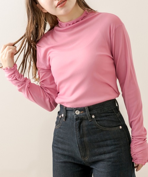 おしゃれに差がつくシアートップス ■デザイン ・今季マストのシアインナーが新たに登場。 ・くしゅっとした長めの袖丈デザインで抜け感をプラス。 ・ほんのり上品な透け感なので、1枚でも楽しめます。 ・裾はメロウで仕上げ、女性らしくこなれた印象に。 ・いつものコーデにプラスするだけで簡単にトレンドスタイルが完成します。 ■カラー ・オフホワイト/ピンク/パープル/ブラックの4色展開 ■スタイリング ・程よく透け感があるので、カップ付きキャミを中に着るのがおすすめ。 ・ミニスカートやIラインスカートで合わせて大人ガーリーに。 ・デニムパンツでカジュアルな着こなしもおすすめ。 ・カーディガンとレイヤードしても今年らしくおしゃれに。 ■point 秋服、秋コーデ、着まわし、着回し、プチプラ、韓国ファッション、重ね着、大学生コーデ、通勤通学、ベーシックカラー、ビビット、韓国コーデ、カジュアル、スポーティ、レイヤードコーデ、シンプル ----------------------------- 裏地:なし 光沢感:なし 透け感:あり 伸縮性:あり ----------------------------- model:162cm ※着用、お取り扱いの際は、商品についている品質表示とアテンションタグを必ずご確認下さい。 ※ご覧のモニター環境や撮影環境により実際の商品と多少色味が異なって見える場合がございます。 ご理解の程よろしくお願いいたします。 ※引っかけ注意 ・粗い組織のものや、表面に凹凸があってルーズな組織のもの 表面に糸が浮き出ているものは、ちょっとした不注意から引っかけてしまいがちです。 取り扱いの際は取り扱い絵表示確認の上、十分注意してください。 ・着用時にベルトや、バックや周囲の壁など表面の粗いものとの摩擦や引っかかりに注意してください。 ・水洗いやクリーニングの際にも他の物ものとの引っかかりに注意して下さい。 ■お気に入り登録のおすすめ 【気になるアイテムを登録】ハートをクリックしてお気に入りに登録すると完売カラーの再入荷やラスト1点の通知、セールの通知を受けとることができます。 【ブランドを登録】新商品や再入荷、セール通知など、いち早くブランドの情報を受けとることができます。