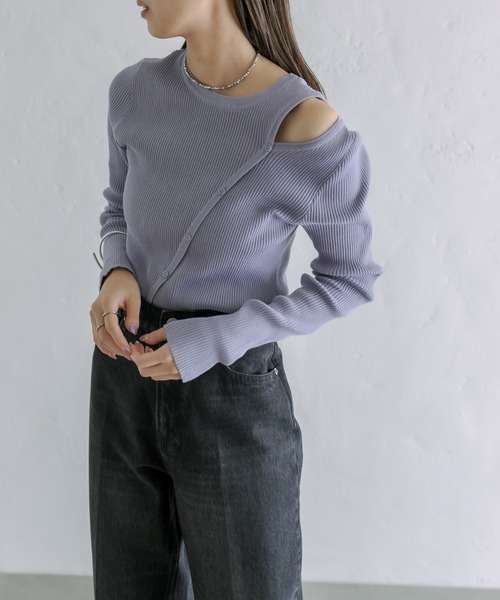 2WAY仕様!華奢見え間違いなしのコンパクトニットが登場! 商品ポイント ・トレンドの肩開きデザインとフロントボタンに注目のニット。 ・伸縮性のあるリブ素材なので、コンパクトながらも締め付け感が少なく着心地抜群! ・長めの袖丈も女性らしい印象に。 ・クルーネックなので首回りっもすっきりと見せてくれます。 ・前後両前でも着れるので幅広いスタイリングに合わせて頂けます。 スタイリングポイント ・スラックスパンツやデニムにインするだけでトレンドのスタイリングに。 ・キャミワンピースやジレにレイヤードして頂くのもオススメ◎ ※洗濯、取り扱い 洗濯:40度限度 手洗い アイロン:中温150℃まで (あて布使用) タンブル乾燥:不可 ------------------------------------------------------ 裏地:なし 伸縮性:あり 光沢感:なし 生地の厚さ:普通 ------------------------------------------------------ ------------------------------------------------------ 商品のお気に入り登録➡ お気に入りアイテムの値下げ・再入荷・在庫1点などの通知を受け取ることができます。 ブランドのお気に入り登録➡ 新商品や再入荷、セール、クーポン配布などお得な情報を受け取ることができます。 ※サイト上のカラー名と、お届け商品に記載されているカラー名が異なる場合がございます。 ※商品の色味は、撮影場所や光のあたり具合などにより色味が違って見える場合が御座います 。 また、お客様のお使いのPCのモニター環境などにより色味が違って見える場合が御座います。予めご了承の上ご注文下さい。 ※ご注文いただいた予約商品のお届け時期の確認は、注文履歴ページより行えます。 ------------------------------------------------------"