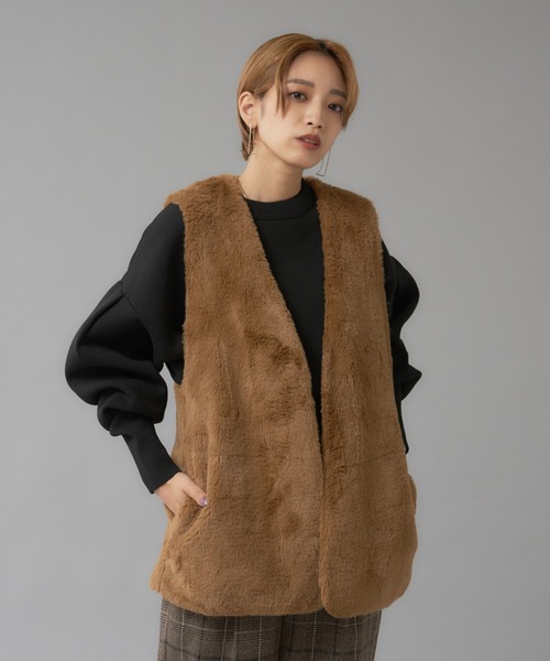 -Design-1枚でスタイリングをアップデートしてくれる存在感抜群のベスト。 チェックとリバーシブルで1枚で2つの表情を変えて楽しめる嬉しい2WAY仕様。 リバーシブルでこの値段は他ではなかなかないアイテム。秋冬のスタイリングにプラスワンでファッションを楽しんで。 -Detail- 脇下の開きを大きくしているのでアウターにも合わせやすい仕様に。 ファーも柔らかく滑らかな手触り。 -Cordinate- シャツやワンピースの上にはもちろん、アウターにONは是非トライしてほしいスタイリング。 ブラウン モデル:H161 B76 W60 H82 着用サイズ:Fチャコールグレー モデル:H161 B76 W60 H82 着用サイズ:F