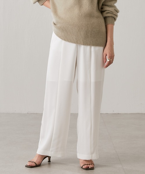 2022 autumn & winter ワードローブに全色揃えたい、綺麗めスタイリングの強い味方 ●ナチュラルストレッチ素材を使用。落ち感が美しく、綺麗めスタイリングがお好みの方におすすめのワイドパンツ。 ●シルクのように膨らみのあるタッチで、ほど良いハリ感と光沢のある上品な風合いが魅力。 ●シワになりにくく、軽い着心地でデイリー使いしやすいのもポイント。 ●シンプルなデザインでどんなシーンやアイテムとも馴染むので、オンでもオフ使える頼れる1着です! ※掲載写真はサンプルのため、ホワイトの裏地はフルレングスになるので、目立たなくなります。 【MATERIAL】 《ホワイト》 表地:ポリエステル 100% 裏地:ポリエステル 100% 《イエロー・ネイビー》 ポリエステル 100% ・透け感:なし ・裏地:ホワイトのみあり ・伸縮性:なし ・光沢感:なし ・洗濯:ご自宅で手洗い可能 ジョーゼットとは=上品なシボ感と、さらりとした肌触りが魅力の生地 【気になる商品は「お気に入り」登録を】 ハートマークをクリックし、お好きなカラーを選んでお気に入りに登録すると 入荷情報や残り1点の通知、完売カラーの再入荷、セール情報などを受け取ることができます。 ※撮影場所やお使いのモニター環境により若干お色味が異なる場合がございます。 特にロケの撮影では明るく見える傾向にございます。詳細撮影画像で色味をお確かめくださいます様お願いいたします。 ※サンプルで撮影をしております。若干の仕様が変更になる場合がございますので予めご了承の上ご注文くださいますようお願いいたします。 ※サンプルでの採寸のためあくまで目安となります。予めご了承ください。