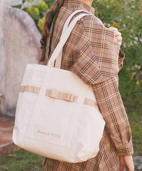 機能性にとことんこだわったトートバッグが登場♪ 【A4サイズ対応】 丈夫なキャンバス生地を使用した、マルチポケットトートバッグ。 フロントのリボンラインや、ゴールドで施されたロゴ刺繍がさりげなく上品なアクセントをプラス♪ 中央に仕切りがついており、片方の間口はファスナー仕様で貴重品も安心です◎ すぐに取り出したいスマホやパスケースを入れられる外ポケットに加え、内側にもそれぞれオープンポケットが付いているので、小物もすっきりと整理することができます。 さらに!水筒やペットボトル、折り畳み傘を入れられる仕切り付きで、使いやすさにとことんこだわったデザインです。 長めのハンドルで肩掛けもしやすく、A4書類やPCもすっぽり入るので収納力も抜群です! デイリー使いはもちろん、お買い物バッグ、通勤・通学のサブバッグとしてなど、さまざまなシーンで活躍してくれるアイテムです。 ≪注目ポイント≫ ◆中央に仕切りあり ◆片方の間口はファスナー仕様 ◆外ポケット付き ◆内ポケット2つ付き ◆水筒やペットボトル、折り畳み傘を収納するのに便利な仕切り付き ● Maison de FLEUR ● (メゾン ド フルール) 「With Happy Days」 大切な誰かの幸せに寄り添うギフトショップ。 フレンチテイストをベースとした上質なライフスタイル雑貨を提案。 自分へのご褒美、大切な人への贈り物に、 人生を彩るさまざまなシーンにフィットするラインナップを揃えました。 上品で定番でありながら洗練されたスタイルを展開。 ▼ 商品のお気に入り登録がおすすめです ▼ 商品ページ内のハートマークをクリック。 完売時の再入荷や、最後の1点の通知、コーディネート画像がアップされたとき、お得なお値下げの際の通知を受ける事ができます。 【お知らせ】ページでも通知が確認できます。