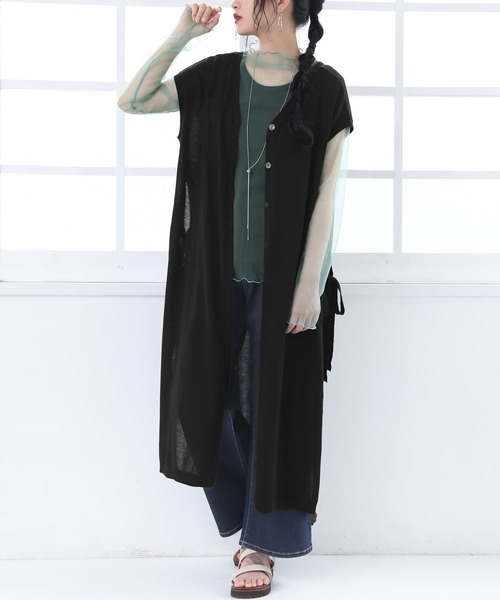 『前後で印象変わる、2wayデザイン。』 頼れるレイヤード力で、着こなしをワンランクアップしてくれるロングニットベスト♪ サイドのリボン&深スリットがアクセントの、前後両方で着られる優秀item。トップスやワンピースの上に重ねるだけで、こなれ感を醸し出します。 薄手で涼しげなニット生地は、重ね着しやすい程よい厚みだから、レイヤード次第で長く着回せるのが嬉しいポイント。 今、好きな物、興味あることを自由な発想で表現できる≪ n'OrLABEL ≫。 「実用性と機能性、そして遊び感覚」、多面性を楽しめるピュアでモードなデザインライン。 これ1枚で着回し上級者になれる≪n'OrLABEL≫前後2wayサイドリボンロングニットベストです。