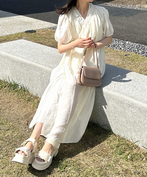 程よく上品なデザインでかわいいワンピース。首元がスッキリしているので小顔効果にも! ネックレスなどのアクセサリーも映えるアイテムです❤️ 柔らかい素材で着心地も良く、スカート部分にも適度なボリューム感があるので体型カバーにもおすすめです。 着回しやすい素材感とデザインで、1枚で着ても、ブルゾンなどと重ね着したりアウターを羽織ってもかわいいのでいろんなパターンで着ていただけます! カラーは小物や髪色にも合わせやすいアイボリー❤️ カジュアル、シンプル、韓国系、モノトーン、ガーリーなど様々な系統で着回しができます。 *下着の色によっては透ける可能性があります。ベージュや白の下着ですと目立ちません。 ドロップショルダー丈バルーン袖ブラウス淡色シャツビッグカラー襟フリルレースシアーパフスリーブギャザーワンピース ---------------------------- カラー:アイボリー ---------------------------- 素材 ポリエステル100% ---------------------------- ※モニター・環境等により実際の商品と多少色味が異なって表示される場合がございます。 予めご了承をお願いいたします。