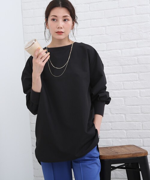 【デザイン】 程よいハリ感のあるシャツ素材と、衿・袖にジャージ素材を組み合わせたシンプルなパフスリーブブラウス。 襟ぐりは今年らしいクルーネックで大人な雰囲気でご着用いただけます。 甘くなりすぎない絶妙な袖のボリューム感、裾カーブで抜け感があり、ウエストイン、アウトどちらでも決まるようにしています。 きちんと感はキープしつつ、カジュアルなスタイルにもあわえやすいよう、衿・袖のジャージ部分使いにしています。 袖は伸縮性に富んでいるのでプッシュアップしてふわっとした袖シルエットを演出するにもおすすめです。 シンプルなので組み合わせしやすく、ベスト、ワンピース、カーディガンインなどのレイヤードスタイルにはもちろん、 ゆるシルエット&ドロップショルダーで一枚着としても雰囲気があります。 【生地感】 ポリエステル×コットン(綿)混のなめらかな表面感にさらっとした着心地の生地感です。 ※オフホワイト(003)は透け感があるため、インナーの着用をおすすめします。 こちらの商品は主に秋に着用いただける商品です。 モデル情報:身長167cm B78 W62 H88 着用サイズ:02(M) 店舗へのお問い合わせ商品番号:C62-85014 ●製品寸法: 02(M):着丈73cm B110cm 袖丈54cm 肩幅49cm 03(L):着丈74cm B112cm 袖丈55cm 肩幅50cm 備考:
