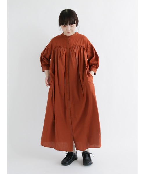 胸元の切り替えデザインが動きのあるシルエットを作り出すワンピース。首元のスタンドネックは、上品で洗礼された印象を演出します。コットン素材使用で肌触りが優しいのも嬉しいポイント◎1枚で着るのはもちろん、ベストなどと合わせて着用するのもおすすめです。※商品画像は、撮影環境やお客様のご利用のPC・スマートフォンの モニター環境などにより実物と色味に差異がある場合がございます。