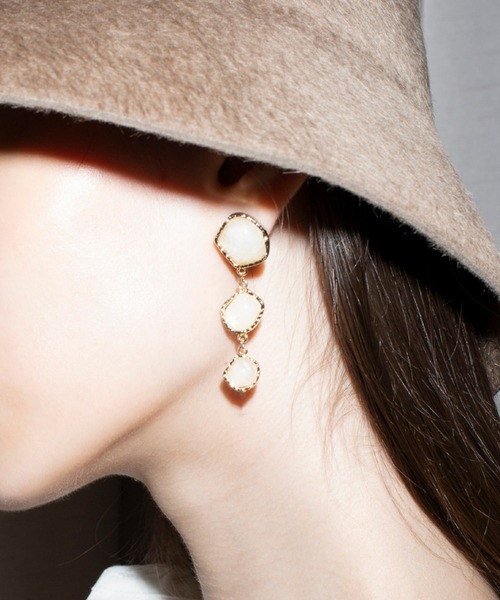 存在感あふれるおしゃれ度高めのピアスぷっくりと立体感のあるナチュラルなストーンが印象的なニュアンスピアス。ストーンがランダムに連なっているデザインなので、お顔周りでさりげなく揺れ動きのある華やかなアイテムです。ゴールドプレーティング(ゴールドメッキ)本金を使用した独自の色合いのメッキコーティングです。高級感のある外観に加え、下地から3層にわたりメッキコーティングしている為 変色、防腐効果も高まります。お取扱い上のご注意水や石鹸は酸化を促す為、なるべくお避け下さい。もし触れてしまった場合は乾いた布ですぐにお拭きください。体質によって、まれに、かゆみ、かぶれが生じる場合がございますので、皮膚に異常を感じたときは、ご使用を止めて、専門医にご相談ください。注意:お使いのモニターによって、カラーが違って見える場合がございます。★《お気に入り登録》でお得な情報がいっぱい★・「商品のお気に入り登録」で再入荷通知や、ラストの通知、セール通知も受け取ることができます。・「ブランドのお気に入り登録」で新商品や再入荷など、お得な情報を受け取ることができます!