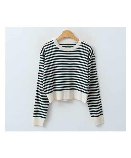 カジュアルやシンプルコーデの必須アイテムボーダーニットです。 細すぎず太すぎないピッチ幅のボーダーは、とても使いやすくてデイリーユースに最適な1枚です。 シンプルにもカジュアルにも色んなボトムスに相性抜群◎ クロップドな丈感でトレンドライクな着こなしが即完成します。 1枚持っていると一年中着回しできる優秀アイテムでおすすめ♪