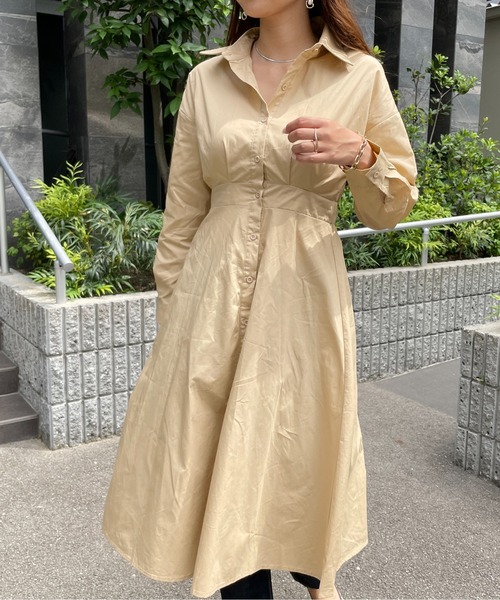 【StyleSea】芦屋発ブランド「スタイルシー」。シンプルで気負いのないシルエット、リラックススタイルで、流行に左右されないタイムレスなデザイン。着心地に拘り、リラックスと都会的な間を楽しむ、女性らしさを忘れないライフスタイルブランド。Autumn Collection【Design/Fabric】■女性らしさ際立つシャツワンピース身頃に寄せたタックやウエスト切替、バックウエストゴムでおなか周りをスッキリ魅せてくれる、フェミニンなXラインのワンピース。女性らしいシルエットの品の良いロング丈のフレアスカートはトレンドレスで、年代問わず取り入れやすいです。■季節の変わり目にも◎ロングシーズン使いまわせるハリ感のある綿100%の生地。コーディネートに取り入れやすいベーシックなカラーを揃えました。■気になる「デコルテ」「二の腕」「ウエスト」「ヒップ」をカバーベーシックなシャツカラーがデコルテをスッキリとみせてくれます。ウエストシェイプしてくれるウエストマークデザイン、長めの丈感は腰回りや体型カバーにもなるので、さらっと気兼ねなく着ていただけます。■体型カバーポイント【デコルテ】【二の腕】【ウエスト】【ヒップ】【太もも】【ふくらはぎ】【スタイリング】・ガウン代わりに細身のテーパードパンツやセンタープレスパンツなどを合わせることでスタイルアップを実現。・トレンドのタートルネック(ハイネック)、クルーネックのシアートップスやメッシュニット、ボリュームスリーブブラウスを合わせて旬のスタイルに。・スラックスパンツやカラーパンツ、トレンドのデニムやスリット入りロングスカートなどと相性がよく、様々なコーデに組み立てできるアイテムです。・シンプルなデザインなのでバケットハットやサファリハットなどの小物、スクエアバッグやキャンバストート、足元はニーハイブーツ、ショートブーツ、スニーカーなど、小物次第で、自由にムードチェンジができるので、飽きがこず長くご愛用いただけます。・ルームウェアやワンマイルウェアとしてはもちろん、これから旅行やレジャーにも使えるアイテムです。【生地】――透け感:ややあり厚さ:普通伸縮性:なし――――――――――お取り扱い上のご注意―――[色味・サイズについて]ご覧のモニター環境や撮影環境(光の照射や角度)により、実際の商品と多少色味が異なって見える場合がございます。また商品画像はサンプルのため、稀にサイズ変更がある場合がございます。予めご了承くださいませ。[シワについて]発送上の状態によって商品がシワになる場合がございます。[においについて]密封状態で入庫し、検品時に再度袋詰めを行っておりますが、素材により染料等の臭いが若干残っている場合がございます。使用していくと臭いが抜けていくのでご安心下さいませ。[柄物アイテムについて]・全ての柄のつなぎ目は合っておりません。・生地の裁断にて、柄の出方が1点1点異なります。※柄のご指定は出来かねます。[色落ちについて]商品により色落ち・色移りがある場合がございます。品質表示を必ずご確認のうえ、着用、お洗濯、保管をお願い致します。《『♡』マークを押してお気に入り登録でお得な情報がたくさんゲット♡》―――――商品のお気に入り登録―――――★ラスト1点のお知らせ ★再入荷 ★セール ★クーポン対象 ★お気に入りの商品コーディネートなど様々な通知をお知らせいたします。――――ブランドのお気に入り登録――――【新作商品】【再販商品】など、お得な情報を受け取ることができます♪是非ともお気に入り登録をお願い致します。