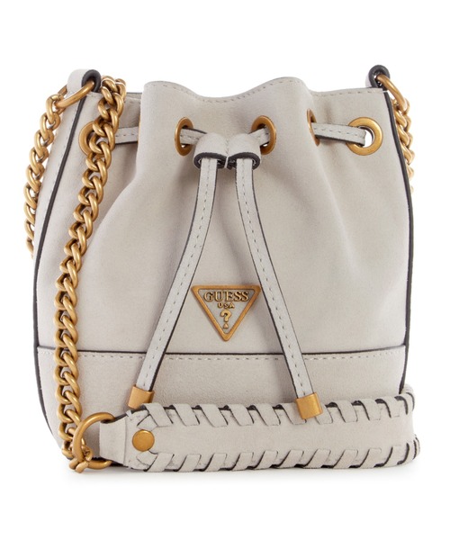 トライアングルロゴ×ゴールドチェーンで上品エレガントに仕上げたショルダーバッグ。バケツフォルムで収納力も高く、内ポケットも備えており小物もすっきり整理整頓することができます。デイリーにはもちろん、デートやパーティなどのオケージョナルなシーンにも活躍してくれるアイテムです。内側オープンポケット:3内側ファスナーポケット:1■GUESSについて1981年にマルシアーノ兄弟により創設され、ジーンズブランドとして始まったGUESSは、ブランド創設43周年を迎えました。ヨーロピアン・スタイルとアイコニックなビジュアルでグローバル・ライフスタイルブランドと成長し、トータルコレクションを世界80カ国以上で1500以上の店舗で展開しています。