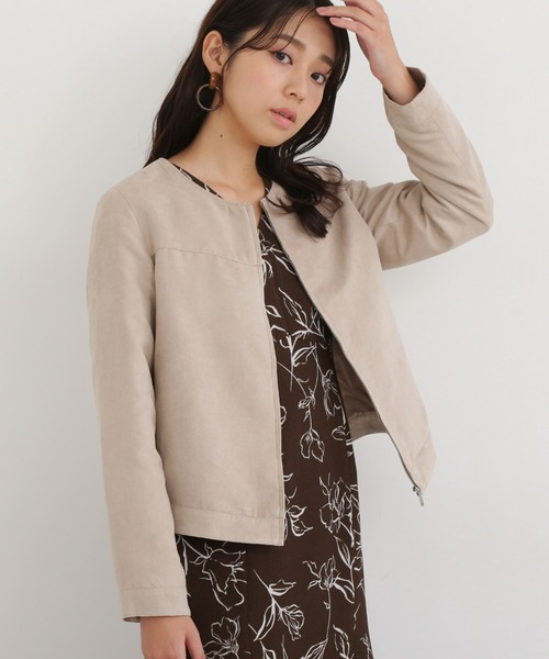 <オフィスカジュアル・デイリーにおすすめ> [design & styling] 柔らかいフェイクスエードブルゾンは、フロントの金属ファスナーできらっと感をプラスした上品顔の1枚。すっきりとしたボックスシルエットなので、きれいめなパンツやスカート合わせた通勤スタイルは勿論、ワンピースと合わせたフェミニンなコーディネートもおすすめです。ニュアンス感のあるパウダリーなカラー展開が、ハードになり過ぎず、女性らしい印象へ導いてくれます。 [fabric] 軽くソフトな風合いのフェイクスエードを使用しました。 ※モデルの着用画像の場合、光の当たり具合により、実際の色味と異なって見えることがございます。色味は、商品単体の画像をご参照ください。 【ZOZOでのお買い物をもっと楽しむために!】 ■ブランド・ショップのお気に入り登録 ・いち早く新作アイテムや限定クーポンなどのお得な情報を受け取ることができます! ■商品のお気に入り登録 ・完売商品の再入荷通知や、残り1点の通知、各種セール通知も受け取ることができ、よりお得にお買い物頂けるチャンスがあります! ※ご注文いただいた予約商品のお届け時期の確認は、注文履歴ページより行えます。