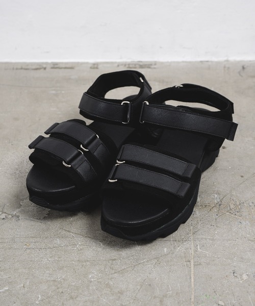 【ファッションインフルエンサー DAISUKE - ハイソールレザーベルトサンダル made in INTER FACTORY】 高級感のあるレザーとボリュームのあるスタイリッシュなサンダル [素材・デザイン] ベルト部分はエコレザーを使用しており、 汚れなどは簡単に拭き取って頂きイージケアーしていただけます。 ゴム素材のソールなので跳ね返るような歩き心地で疲れにくいです。 ボリュームのあるソールなので5cmスタイルアップをしていただけます。 足元をしっかりホールドしてくれるデザインで、 かかと部分のベルトも調節できる仕様なのでフィット感抜群。 機能性とデザイン性どちらもこだわったアイテム。 [推奨サイズ] S:25.0〜25.5 M:26.0〜26.5 L:27.0〜27.5 ※屋外での撮影画像や光の当たり具合で色味が異なって見える場合がございます。 商品の色味はスタジオでの詳細画像をご参照下さい。 [ INTER FACTORY ] 2019年2月28日創立 時代のニーズに合わせたトレンドベーシックアパレルをベストプライスで展開。 クオリティとマテリアルセレクトにこだわった新時代のファクトリーブランド。 ▼商品のお気に入り登録 完売カラーの再入荷通知や、ラスト1点、セールの通知をお知らせ致します。 ▼ブランドのお気に入り登録 新商品や再入荷など、いち早くブランドの情報を受け取ることができます。 是非ご利用頂き、お買い物をお楽しみ下さい。