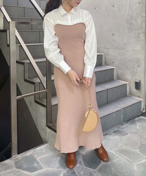 NICECLAUP 2022 early Autumn Collection1枚でコーデが完成するワンピースシャツにニットビスチェワンピをレイヤードしたようなデザイン。シルエットはリブ感のあるIラインシルエット。うしろのウエストにはレースアップを施し、ウエスト周りをスッキリマークしてくれます。上品な大人っぽい印象のワンピースなので、カフェコーデや、お出かけコーデにもオススメです。■オススメコーディネート上品な印象のワンピースなので、ブーツ合わせやレザーの小さ目バッグなどと合わせるのがおすすめ。小物で差し色を合わせたコーデも◎秋冬のシーズンにならトレンチなどのロングコートを羽織れば、大人レディーなコーデになりオススメです。-------------裏地:あり伸縮性:あり生地の厚さ:普通生地の重さ:普通-------------※サンプルでの撮影のため、実際のものと仕様や色が異なる場合があります。※室内、室外での撮影のため実際より明るく映っていたり、暗く映っていたりする場合がございます。※品質表示を必ずご確認下さい。▼お気に入り登録のおすすめ【気になるアイテムを登録】ハートをクリックしてお気に入りに登録すると完売カラーの再入荷やラスト1点の通知、セールの通知を受けとることができます。【ブランドを登録】新作入荷や再入荷、セール通知など、いち早くブランドの情報を受けとることができます。是非ご利用下さい♪2022AW