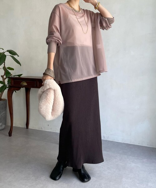 ■2022 AUTUMN & WINTER ITEM■シアートップスとリブタイトスカートのセットアイテム!秋冬仕様で登場!これだけで今らしさをぐっと引き出せるお得なセットアップ。トップスはシアー素材で仕上げたロンtee。余裕感のあるサイジングで、抜け感たっぷりの印象を与えます。そして、Iラインシルエットのスカートは、バックスリットでデザイン性をプラス。すっきりと見せてくれる上に、リブ素材+ウエストオールゴム仕様で、ストレスフリーな着心地を叶えます。それぞれ単体でも着回し力を充分に発揮してくれるので、持っていれば活躍してくれること間違い無しのアイテムですよ!- POINT -・お得な上下セットのアイテム・サマ見えするのに着心地は楽々・それぞれ単体でも活躍【 ♡ をクリックでお得な情報をお知らせいたします 】〈 商品のお気に入り登録 〉 お気に入りアイテムのお値下げ・再入荷・在庫ラスト1点など通知を受けることができます。〈 ブランドのお気に入り登録 〉DOUDOUの新商品や再入荷、セール、クーポン配布などお得な情報を受けることができます。--------------------------------------※ 生産の都合上、お届け時期が前後する場合がございます。※ 掲載画像の商品の色味は、 撮影場所や光の当たり具合などにより色味が異なって見える場合がございます。 また、お客様のお使いのPC・スマートフォン等のモニター環境などにより色味が異なって見える場合がございます。予めご了承の上ご注文ください。 ※ 着用、お取り扱いの際は、商品についている品質表示とアテンションタグを必ずご確認下さい。