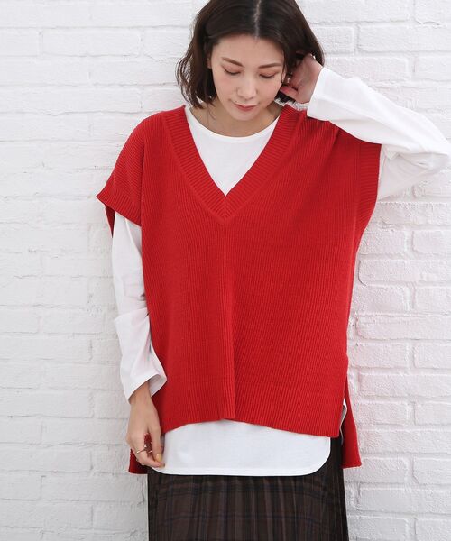 【デザイン】柔らかい風合いの糸をつかった畦編みのニットベスト。深めのVネック、深めの脇スリットで抜け感があり、カットソー、シャツ、ワンピースなどにレイヤードしやすいデザインです。ヒップが隠れる丈なので、体型カバー&スタイルのアクセントになる旬なアイテム。【生地感】伸縮性が高く凸凹とした表面感が特徴の生地感です。※ナチュラル(050)はやや透け感があるため、インナーの着用をおすすめします。こちらの商品は主に秋に着用いただける商品です。モデル情報:身長167cm B78 W62 H88 着用サイズ:00(FREE)店舗へのお問い合わせ商品番号:C62-25004●製品寸法:00(FREE):着丈62cm B112cm 裄丈34cm備考:
