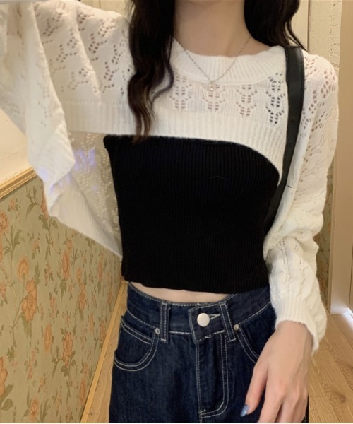 クロップドトップスでレイヤードスタイルを楽しむ♪透かし編みデザインとゆったりめのスリーブがルーズでガーリーな印象を与えるニットトップス。前後差のあるクロップド丈になっており、レイヤードスタイルにぴったり。手持ちのインナーやTシャツに合わせれば、いつもと違う新鮮な印象に。ショート丈のインナーでヘルシーな肌見せコーデを楽しむのもおすすめです。ボトムスはデニムやスリムなパンツで、ルーズシルエットを活かした細見えコーデを叶えてくれる一枚です。♪♪♪商品をご覧いただきありがとうございます。完売カラーの再入荷などの情報につきましては、以下ご参照ください。▼商品のお気に入り登録→ 【カートに入れる】右側のハートマークをクリック完売カラーの再入荷通知や、ラスト1点の通知、セールの通知も受け取ることができます。▼ブランドのお気に入り登録→ ブランドタグのページからお気に入りをクリック新商品や再入荷など、いち早くブランドのお得な情報を受け取ることができます!※店頭及び屋外での撮影画像は、光の当たり具合で色味が違って見える場合があります。※他のキャンペーンにより、期間中に価格が変動する場合があります。※セールは予告なく終了させていただく場合もあります。