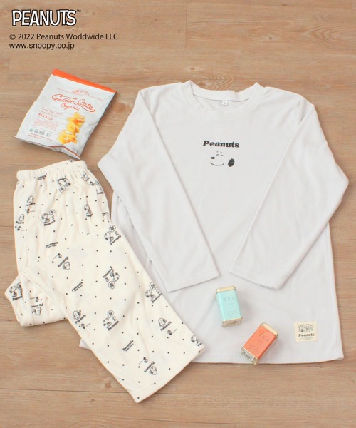 微起毛素材が心地よいPEANUTSのワンポイント刺繍ルームウェア 大人気PEANUTSシリーズから、スヌーピーのフェイス刺繍がかわいいルームウェアが登場。 長袖ロンTとロングパンツの上下セットです。 素材には、マシュマロのように柔らかくふんわりとしたマシュマロニットを使用。 トップスには優しく笑うスヌーピーの、ワンポイント刺繍が施されています。 パンツは総柄プリントで、ドット柄の中には陽気に歌うウッドストックや 寝そべるキュートなスヌーピーがプリントされています。 ウエストはゴム仕様でゆったりとした心地よい履き心地です。 カラーは落ち着いた色味のオフとグレーの2色展開。 プリント柄はブラックなので、エイジレスに着用していただけます。 一度袖を通したらやみつきになる肌触りをお楽しみください♪ おうち時間やお泊り・旅行にも、愛され度高めのルームウェアセット。 快適な着心地でリラックスタイムにぴったりなパジャマです。 親子やお友達と色ちがいやおそろいコーデ、ペアでの着用も素敵です。 誰からも好印象なスヌーピーはプレゼントとしてもおすすめ。 【素材】 軽くてなめらかな肌ざわりのマシュマロニット素材を使用。 真夏以外、通年で着用できる便利な素材です。 微起毛で横にストレッチします。 【お手入れ方法】 洗濯機 使用可 【カラー展開】 オフホワイト(オフ白、アイボリー) グレー(チャコール、ライトグレー) 【サイズ展開】 Mサイズ Lサイズ 《お気に入り登録》でお得な情報がいっぱい ・「商品のお気に入り登録」で再入荷通知や、ラスト1点の通知、セール通知も受け取ることができます。 ・「ブランドのお気に入り登録」で新商品や再入荷など、お得な情報を受け取ることができます!