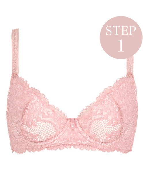 ▼ブラデリス育乳ブラジャー ステップ1「集める」 ブラデリスニューヨークのブラは、STEP1「集める」、STEP2「寄せる」、STEP3「持ち上げる」と、それぞれ異なった役割を持つブラがあります。 STEP1ブラはベース作りタイプ。 幅広ワイヤーのブラジャーで、流れたお肉を集めてバストの土台を作る効果があります。 ▼集めたバストを優しく包み込むソフトタイプ「ウェンディタイプ」 底面積の広いカップと幅広ワイヤー設計でしっかりお肉を集め、サイドボーンが集めたお肉を逃がしません。 柔らかなカップでふんわりとした着け心地、集めたバストを優しく包み込みます。 フィット感が良く、小さい胸の方には程よい谷間を作り、大きなバストの方はすっきりコンパクトラインに仕上げます。 自然なシルエットがお好みの方や補整ブラ初心者の方にもおすすめです。 ▼仕様 ホック 3個どめ3段階調節/付属パッド付/サイドボーンあり/バックパワーネット/モチーフあり ▼効果 集める ★★★★★ 高さ ★★★☆☆ 谷間 ★★★☆☆ ▼こんな方に特におすすめ ・きつい補整ブラが苦手 ・脇や背中からお肉を集めたい ・バストが張って痛い日にも ・普通~ふくよかな体系に◎ ▼デザイン アカンサスの美しい葉々や、パールドットやネットの柄が印象的なレース。 1浴染めのマットな仕上がりを柔らかいカラーリングで表現しています。 トリコットとレースの2種の素材を組み合わせることで、メリハリがあるデザインです。 ◆カップ表 レース縦ダーツ仕様。レース表下にトリコットを重ねています。 ◆カップ裏 綿100%天竺を使用。吸汗性がよく優しい肌当たり。 ◆カップ芯 ふわふわカップでバストをやさしく包み込みます。 ◆パッド 綿100%天竺を使用。カップのサイズによってパッドの大きさを変えています。 ◆ストラップ 安定性・肌当たり共にバランスの良いデザイン性のあるストラップ使用。 ◆バック ストレッチレースに裏打ちパワーネット付きで、安定感のある着用感。 ◆サイド 脇のお肉をせき止めてすっきりさせるサイドボーン入り。 ◆ネームタグ 肌触りを考慮し、右側のパッドポケット口の内側にネームタグを設置。 ▼サイズ詳細を必ずご確認ください 補整機能が付いているため、一般的ブラサイズとは異なります。 ▼コーディネート商品 パンティ 問い合わせ番号:CA222307 タンガ 問い合わせ番号:CA222308 ※こちらの商品はブラ単体です。 ▼洗濯方法:手洗い 洗濯は下着の寿命を長持ちさせる、ランジェリーソープがおすすめです。 150g (約30回~60回分) 問い合わせ番号:PD916006 450g(約90回~180回分)問い合わせ番号:PD916016 [注意事項] ※お使いのパソコン・端末等の環境によっては、 若干色が異なって見える場合がございます。 ※下着の補整力を長く保つためにも、ランジェリーソープでの手洗いをおすすめしております。 ※柔軟剤を使用すると下着が柔らかくなるため、型崩れなどにより補整力が低下する恐れがございます。 ※濃色商品は染色の性質上、洗濯すると色落ちする事があるので、淡色や白物と組み合わせての着用や洗濯はお避け下さい。 ※長時間濡れたままで放置しないで下さい。 ※淡色製品には蛍光増白剤入り洗剤を使用しないで下さい。 ※タンブラー乾燥機を使用しないで下さい。 ※繊細な素材を使用している商品の場合には引っ掛かりなどには十分ご注意下さい。 ▼返品について 商品の性質上、ご開封後・ご着用後のご返品はお受けすることができません。あらかじめご了承ください。