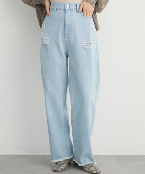 ゆるっとカジュアルな中に遊び心を込めた、ダメージセミワイドデニム。 主張しすぎないダメージデザインと裾フリンジで大人感をプラス。セミワイドなシルエットが美脚を叶え、腰元はゆったりとしたハイライズで脚長効果も狙えます。 どんなトップスとも相性が良く、シーズンレスで着こなしを楽しめます。 【素材】 透け感[無し] 裏地[無し] 伸縮性[無し] 光沢感[無し] 生地の厚さ[厚手] 付属品[無し] ポケット[有り]前3つ 後2つ ● Green Parks ● (グリーン パークス) 20以上の人気ブランドを取り扱うアパレルセレクトショップ。 ベーシックながらもさりげなくトレンドを取り入れたオリジナルブランドchocol raffine robeも展開。 ▼ 商品のお気に入り登録がおすすめです ▼ 商品ページ内のハートマークをクリック。完売時の再入荷や、最後の1点の通知、コーディネート画像がアップされたとき、お得なお値下げの際の通知を受ける事ができます。 【お知らせ】ページでも通知が確認できます。