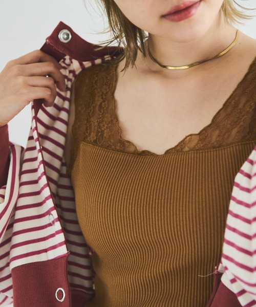 Crisp定番のレースタンクトップ。程よいフィット感と繊細なレースで女性らしさを演出してくれます。レイヤードコーデのインナーとして活躍の1枚。襟ぐりが大きく開いたトップスや、羽織りアイテムなどから覗かせる着こなしがおすすめです。シンプルで使いやすいので色違いで揃えておくのも◎デコルテがきれいに見えるネックライン。シアーなレースがコーディネートを華やかにしてくれます。細めのリブ地と透け感のあるレースで大人っぽく着られます。伸縮性があり快適な着心地です。- - - - - - - - - - - - - - - - - - - - - - - - - - - - - - - - - 透け感:なし(レース部分のみあり)裏地:なし伸縮性:あり光沢感:なし- - - - - - - - - - - - - - - - - - - - - - - - - - - - - - - - - ※ 撮影時の照明などの環境と、モニターに表示される色味がメーカーにより変わってしまう等の理由により、実際にお届けする商品と、ご覧になられているアイテムの色が若干異なる場合がございます。ご了承下さいませ。