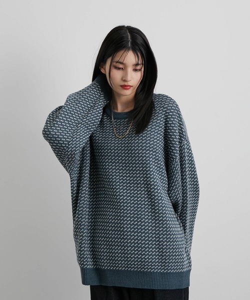 【レトロパターン】バーズアイルーズニットプルオーバー ■素材、機能 肉厚なボリュームでタッチ感良い糸を使っているのでチクチク感もなく快適に防寒できる素材です。 オリジナルのバーズアイ柄を作成しヴィンテージ感もありながら今っぽく感じるカラーリングニットです。 ■シルエット、デザイン オリジナルのバーズアイ柄を全面にしたインパクトのある総柄ニットプルオーバーです。 襟、袖口、裾口に配色カラーにし目を引くデザインアクセントになっています。 ルーズなシルエットですが伸び感が良いので体に気持ちよくフィットして暖かさをキープしてくれます。 インナー、一枚着でも活躍するアイテムです。 ■カラー ベーシックなカラーリングなのでインナーでも単品でも使いやすいカラーリングの3色展開です。 ■スタイリング 単品でも特徴があるサイズ感と柄なのでデニムワイドパンツや合わせたレトロスタイルに相性抜群です。 オーバーコートのインナーで柄をチラ見せることでさりげないトレンドコーデが完成です。 裏地:なし 透け感:なし 伸縮性:あり 生地感・厚さ:厚手 ポケット:なし その他仕様:なし 【モデル着用サイズ】 MEN:身長177cm 着用サイズL WOMEN:身長164cm 着用サイズM ※撮影場所やライティング、お使いのモニター環境によって色の見え方が異なる場合がございます。 ※画像の商品はサンプルです。 実際の商品と仕様、加工、サイズが異なる場合がございます。