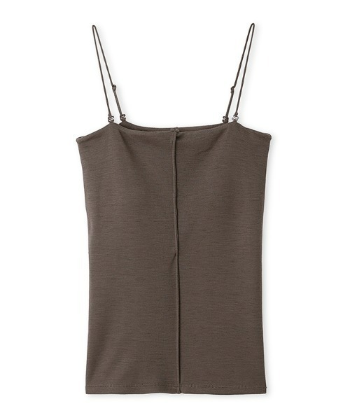 【華奢なショルダーストラップのアレンジで表情をかえるカップインベアトップ】 【Design/Styling】 肌さわりが良いSuper100ウールのフライスを使用し、心地いいストレッチの効いたソフトでしなやかな素材感が特徴。 ナローストラップを取り外すとベアタイプだけでなく、フロント部分の肩紐を取り外して中心に通していただくとVラインを描くので、シャープな印象が引き立つ装いに。 センターシームもアクセントとなり、ジャケットやシャツ、首元があいたアイテムなどのインナーとして、様々なレイヤードスタイルに活躍できます。※パッドは取り外し可能です。 ※照明の関係により、実際よりも色味が違って見える場合があります。 またパソコン・スマートフォンなどの環境により、若干製品と画像のカラーが異なる場合もございます。予めご了承ください。 商品の色味は、商品単品画像をご参照下さい。 ※商品画像はサンプルのため、色味やサイズ等の仕様に変更がある場合がございますので、予めご了承ください。
