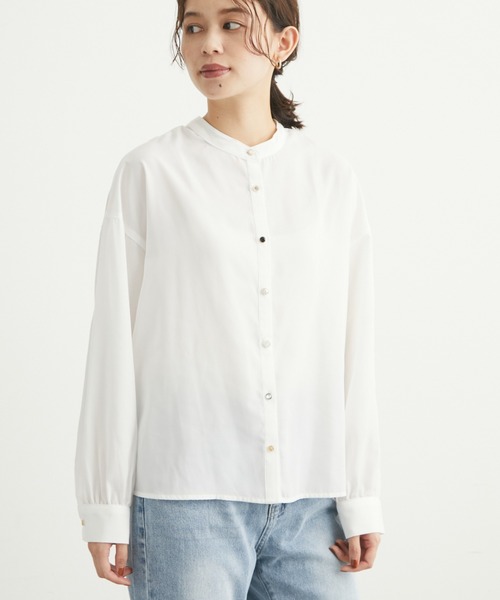 フロントボタンの異種使いがコーディネートのアクセントになるブラウス。 バンドカラーは、上品で清潔感のある雰囲気をプラスします。 肩落ちのデザインで、丸みのある女性らしいシルエットに◎ スカートと合わせたフェミニンなコーディネートがおすすめです。 【素材】 透け感[無し]※オフホワイトやや有り 裏地[無し] 伸縮性[無し] 光沢感[やや有り] 生地の厚さ[薄手] 付属品[無し] ポケット[無し] ●ELENCARE DUE● (エレンカーレデュエ) ちょっとしたこだわり感と、自然体で『大人可愛い』を大切に、トレンドからベーシックまで時代のニーズに寄り添った商品を提案。 ▼ 商品のお気に入り登録がおすすめです ▼ 商品ページ内のハートマークをクリック。完売時の再入荷や、最後の1点の通知、コーディネート画像がアップされたとき、お得なお値下げの際の通知を受ける事ができます。 【お知らせ】ページでも通知が確認できます。