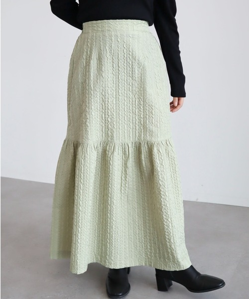 表面感のある素材がアクセントになるスカート。1段のティアードが、さりげない甘さをコーディネートにプラスします。ウエストゴム仕様で、穿き心地が楽なのも魅力的◎シンプルなトップスと合わせて、スカートをスタイリングの主役にするのがおすすめです。【素材】透け感[無し]裏地[無し]伸縮性[無し]光沢感[無し]生地の厚さ[普通]付属品[無し]ポケット[無し] ● Green Parks ●(グリーン パークス)20以上の人気ブランドを取り扱うアパレルセレクトショップ。ベーシックながらもさりげなくトレンドを取り入れたオリジナルブランドchocol raffine robeも展開。▼ 商品のお気に入り登録がおすすめです ▼商品ページ内のハートマークをクリック。完売時の再入荷や、最後の1点の通知、コーディネート画像がアップされたとき、お得なお値下げの際の通知を受ける事ができます。【お知らせ】ページでも通知が確認できます。