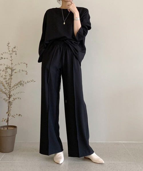 センタープレスがアクセントのゆったりワイドパンツ。 ■ Styling. シルクのようなとろんとした生地感高見えするワイドパンツです。 ワイドなシルエットとセンタープレスが美脚効果抜群。 シンプルだけどカジュアル過ぎず、オフィスやオケージョンスタイルにも◎ 同生地の長袖カットソーとセットアップで着るのもオススメ! ■ Point. ・ウエストはゴム入り・KOMC22s-415:セットアップ可能 -- ZOZOTOWNでお買い物をもっと楽しく! -- ■購入ボタン横の♡(ハートマーク)をクリック! 完売カラーの再入荷通知や、ラスト1点の通知、セールの通知も受け取ることができます。 (クリックで商品のお気に入り登録) ■ショップのトップページにある♡(ハートマーク)「お気に入りショップに追加」をクリック! 新商品や再入荷等、いち早くブランドのお得な情報を受け取ることができます。 (ブランドのお気に入り登録) ※モデル着用商品の画像はサンプルのため、実際の製品とは仕様や加工、サイズ等が若干異なる場合がございます。 ※商品の色味は、撮影場所や光のあたり具合・お客様のお使いのPCのモニター環境 などにより色味が違って見える場合がございます。予めご了承の上ご注文下さい。 シンプル/デート/オフィス/おしゃれ/カフェ/デート/きれいめ/かわいい/フェミニン/ガーリー/大人/エレガント/大人カジュアル/フレンチガーリー/韓国/プチプラ/プチプライス/大人/結婚式