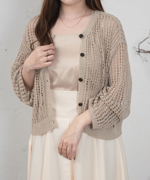 日々のスタイリングにプラス一点するだけでこなれた雰囲気に。ヘルシーな肌見せ叶う、透かし編みが涼しげなニットカーデ。存在感のある1着だからさらっと羽織って、コーディネートの主役に。短い丈はバランスがとりやすく、さりげないスタイルアップも狙える、お役立ちアイテム。■point・メランジ調の糸・2way・ゆったりシルエット■detail2WAYの仕様はカーディガンのように羽織ったり、プルオーバー風で着たりと、その日の気分でスタイリングを楽しめます。■fabric……………………透け感:あり厚さ:普通伸縮性:あり……………………※詳しいお手入れ方法は商品タグをご参照ください。■coordinate程よくコンパクトな丈感だから、ハイウエストボトムと合わせれば脚長効果も狙える細見えコーデに。これからの季節はキャミソールをインした涼し気なコーデもおすすめ◎《 Ambre Ciel 》Ambre Neige_から新ライン登場🕊"『 MY PLAYFULNESS!MY STYLE!』“今着たい” をベースに遊び心を兼ね備えた自由なclosetを提案致します♪※ご注意※・屋外の光や照明の当たり具合で、実際の商品の色味とカラー別画像の色味に若干の違いが発生する場合がございます。・詳細画像と併せてご確認の上、ご注文いただきますようお願い致します。※サイトに表示されているカラー名と実際のお届け商品に記載されているカラー名が異なる場合がございます。●お買い物をお得によりお楽しみいただく為に●▼商品のお気に入り登録&ブランドお気に入り登録▼ がおすすめです!♡をクリック完売カラーの再入荷通知や、ラスト1点の通知、プライスダウンしたセール通知も受け取ることができます。ブランドお気に入り登録もご一緒にお願い致します。