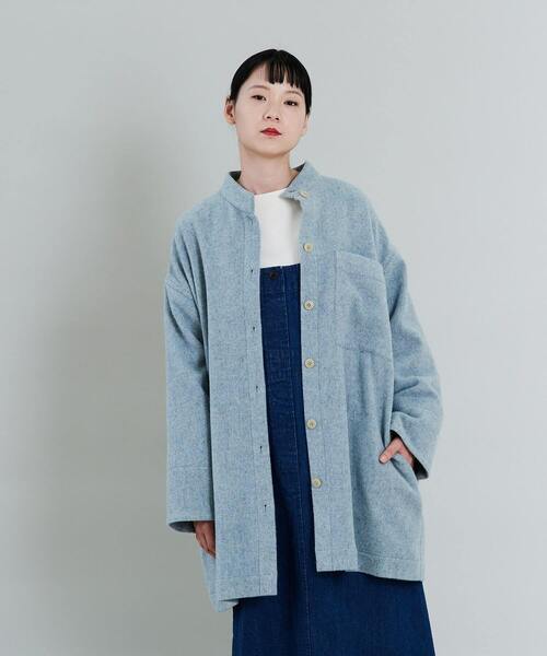 【素材】 ウール混の綾織素材にモッサ加工を入れてウォーム感のある表情に仕上げています。見た目より軽い生地感が特徴のコート生地です。 【アイテム】 とても軽いウールモッサを使用したブルゾンとコートの間の様なアイテムです。 ワイドシルエットの3ポケットカバーオールです。 ルーズでメンズライクなシルエットが魅力です。 *袖・後身頃裏付き ※ブルーはモデルサイズのサンプルを着用しているため、他のカラーと見え方が異なります。 サイズ表を参考の上ご購入ください。 ---------------------------------------------------------------------- ■洗濯:家庭洗濯× ■透け感:なし ■裏地:袖・後ろ身頃裏付き ■伸縮性:なし ■光沢感:なし ---------------------------------------------------------------------- 【ブランド情報】 congés payés/コンジェ ペイエ congés payés =有給休暇 リラックスできるコンフォータブルな服。天然素材をベースに、ライフスタイルに寄り添うエフォートレスアイテムを提案します。 ---------------------------------------------------------------------- 【お気に入り登録】がオススメです!! □商品のお気に入り登録□ 再入荷、残り1点、セールなどの通知を受け取ることができます。 →商品ページ ♡ をクリック ■ショップのお気に入り登録■ 新商品や再入荷、クーポン発行、ショップニュースなど、いち早くショップの情報を受け取ることができます。 →「♡お気に入りショップに追加」 をクリック ----------------------------------------------------------------------